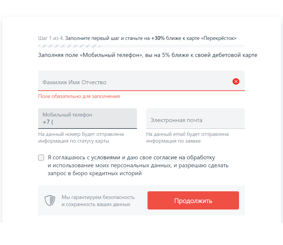 Как уже было сказано выше, самый первый шаг при оформлении карты МИР это подача онлайн-заявки. Здесь нужно выполнить следующую последовательность действий: