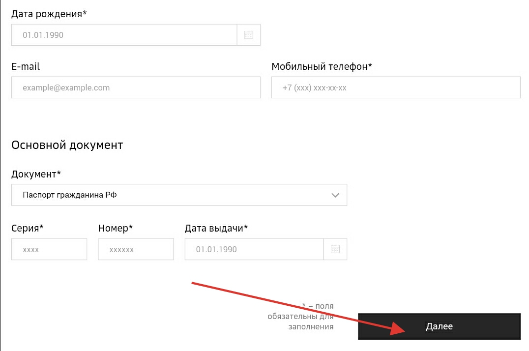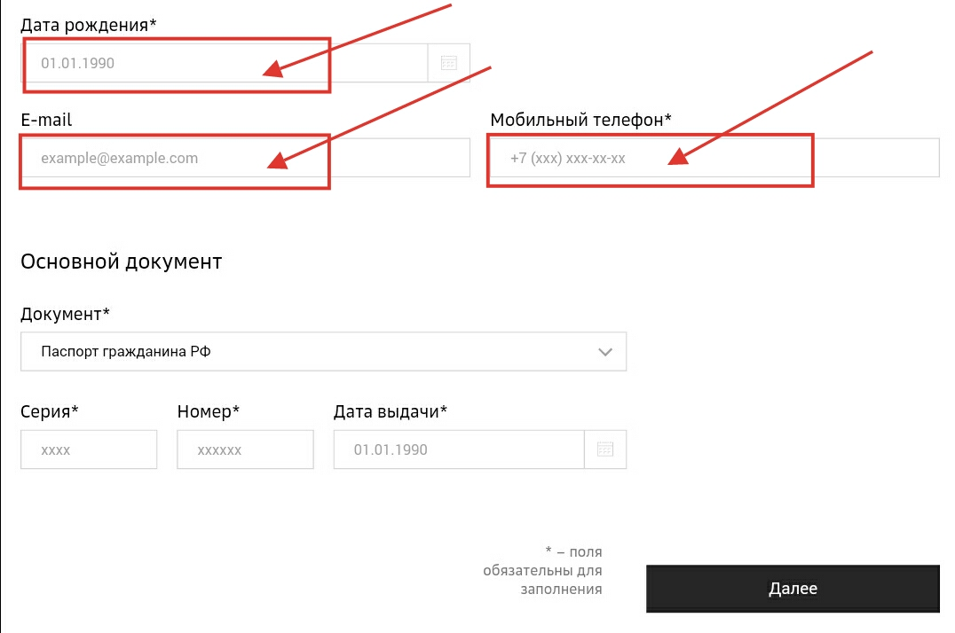 - Указать дату рождения и контактные данные: адрес электронной почты и номер телефона.
