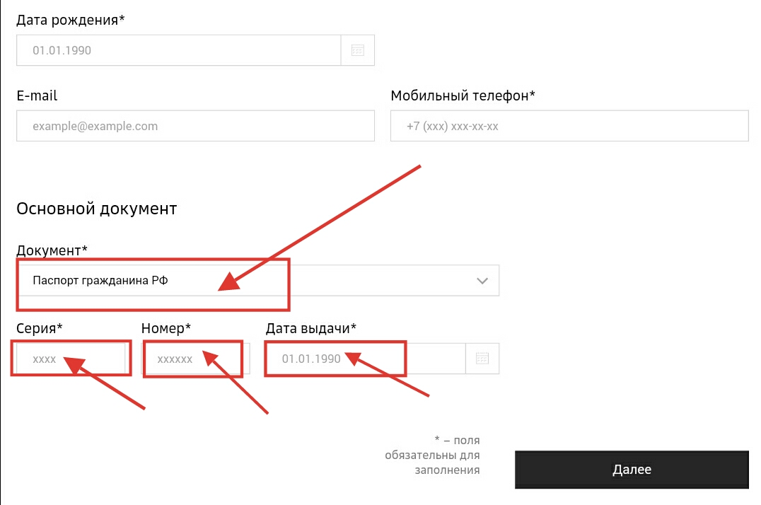 - Указать наименование документа, его серию, номер и дату выдачи.