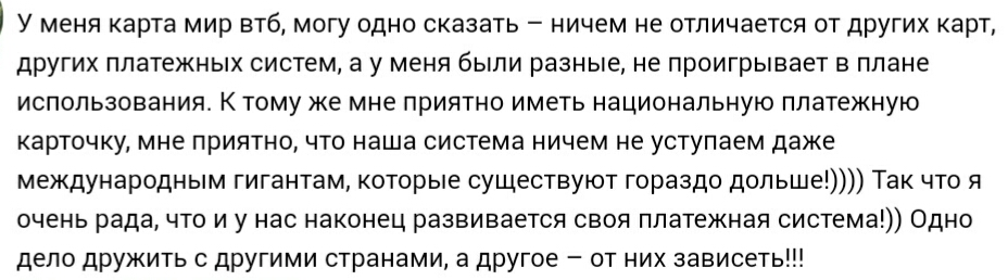 - ограниченная территория обслуживания карточки (за границей картой МИР можно расплачиваться в нескольких странах);