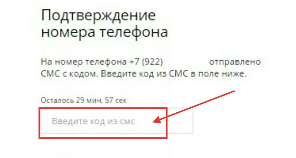 - Ввести код из СМС-сообщения.