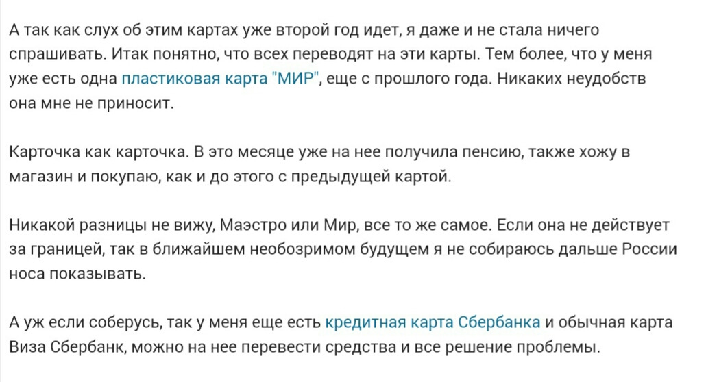 Отзывы о карте МИР Сбербанка для пенсионеров